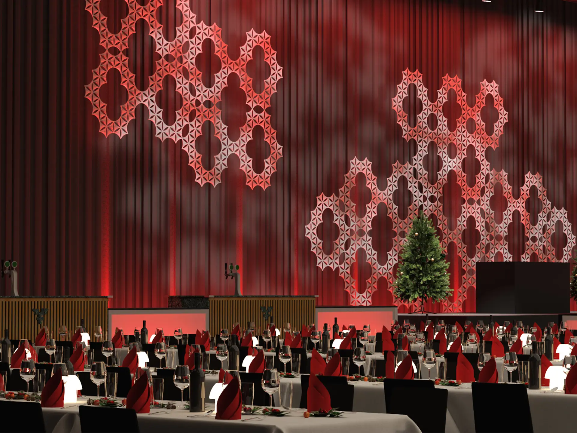 Med Den Elegante Julefest bliver lokalet til et stemningsfuldt juleballroom med lys, juletræer og dekorationer. Hele pakken – julebuffet, fri bar og scenografi – giver en elegant og professionelt organiseret julefest, der skaber en mindeværdig oplevelse for alle.