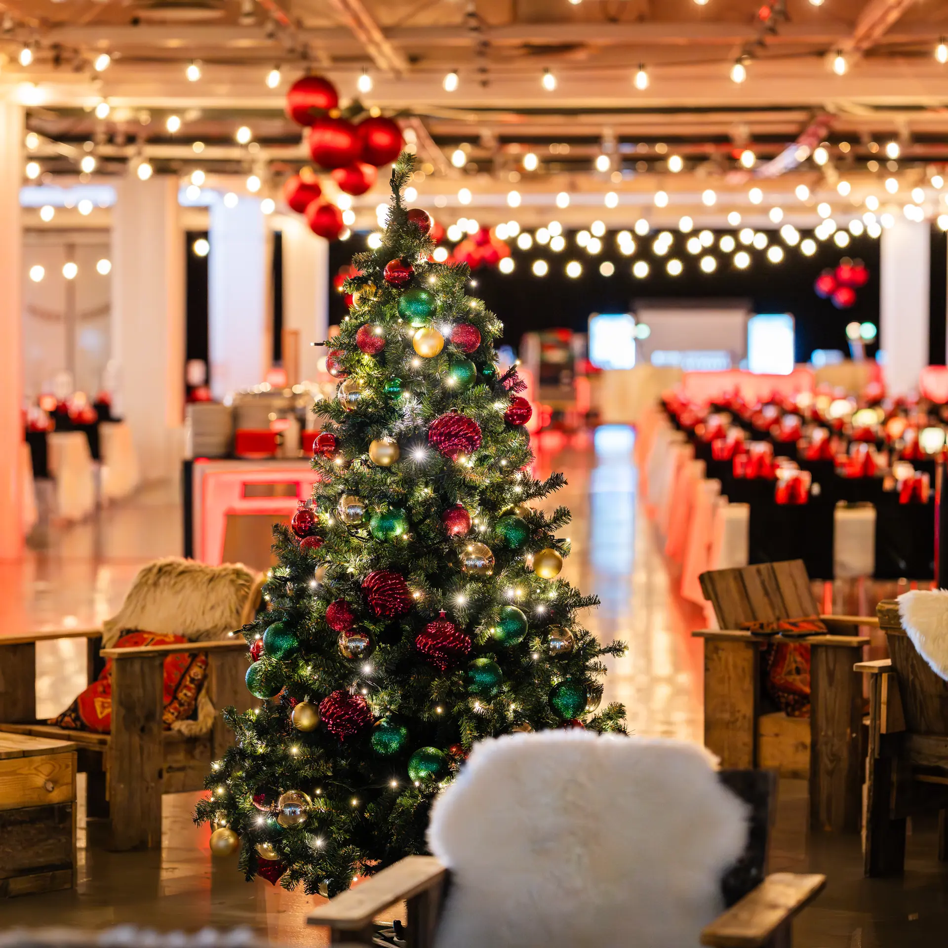 Oplev julens hygge i et juleunivers, hvor rå, industrielle lokaler forvandles med lyskæder, juletræer, loungeområder og langborde. Fra første velkomstdrink til sidste dans skaber vi en stemningsfuld ramme for en mindeværdig julefrokost.