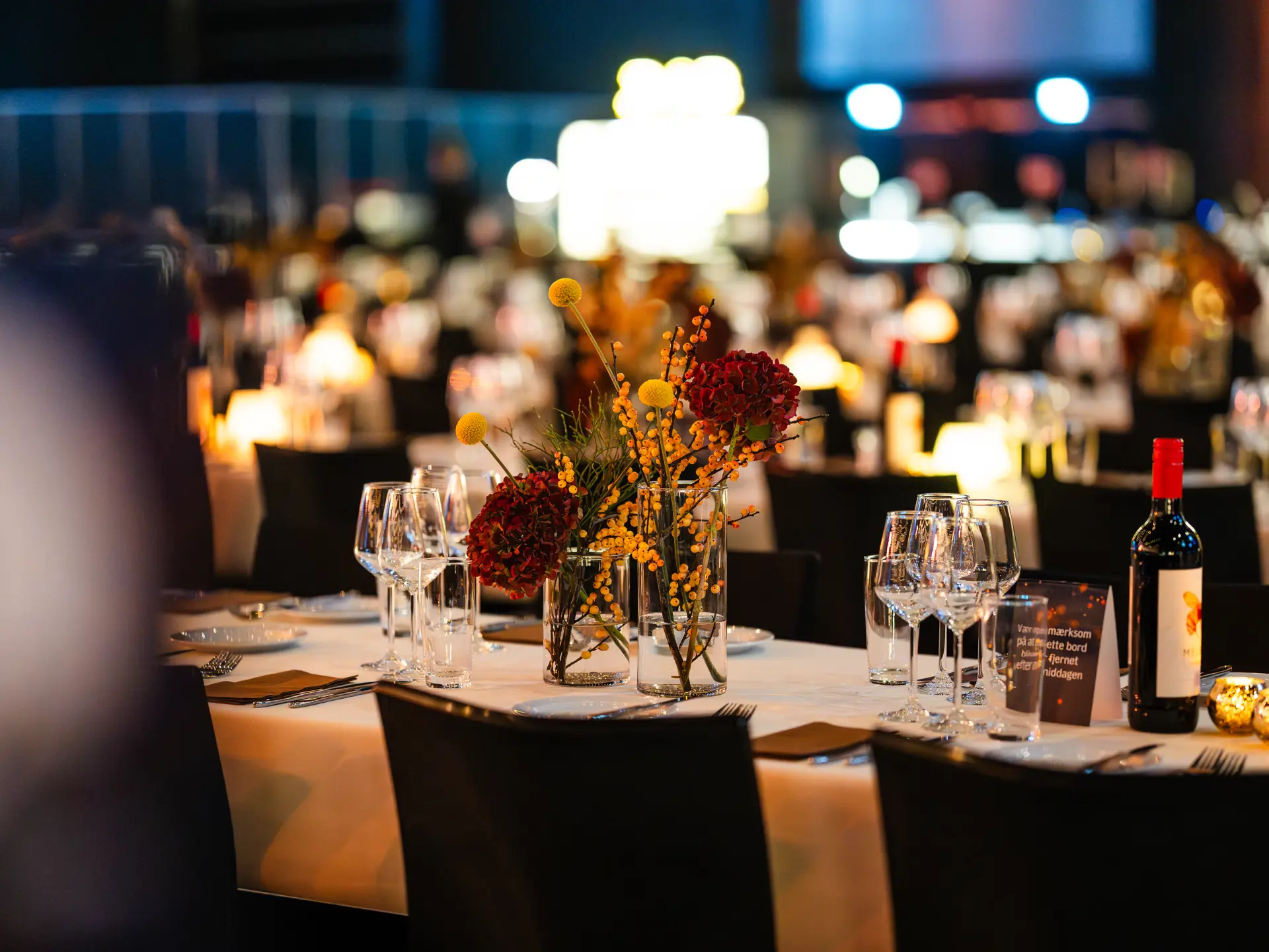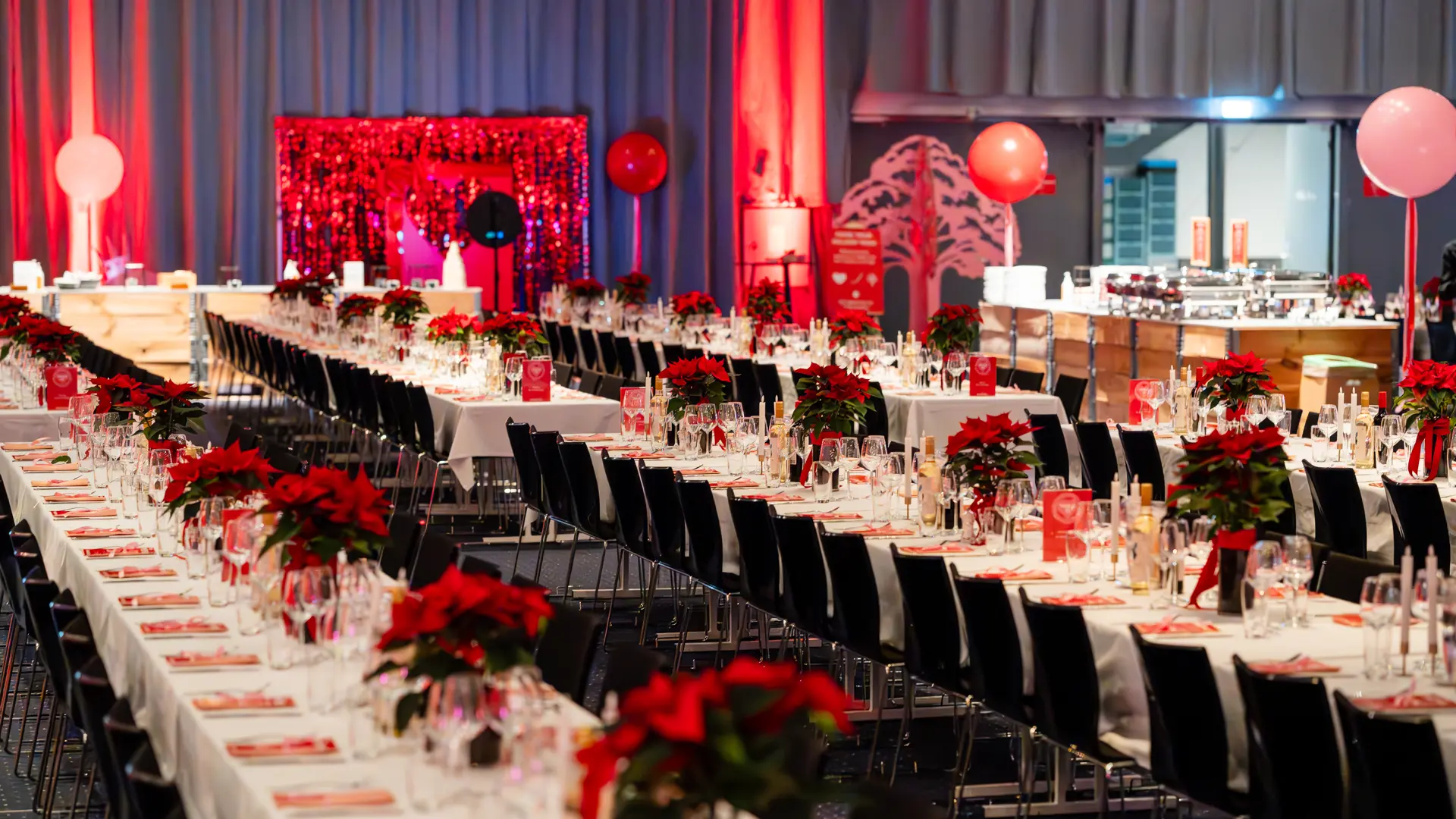 Vi lægger vægt på detaljerne – fra de store visuelle rammer til de små elementer på bordet. Lys, farver, borddækning og dekorationer tænkes sammen, så helheden føles gennemført. Resultatet er en stemningsfuld julefrokost, hvor hver detalje bidrager til den samlede oplevelse.