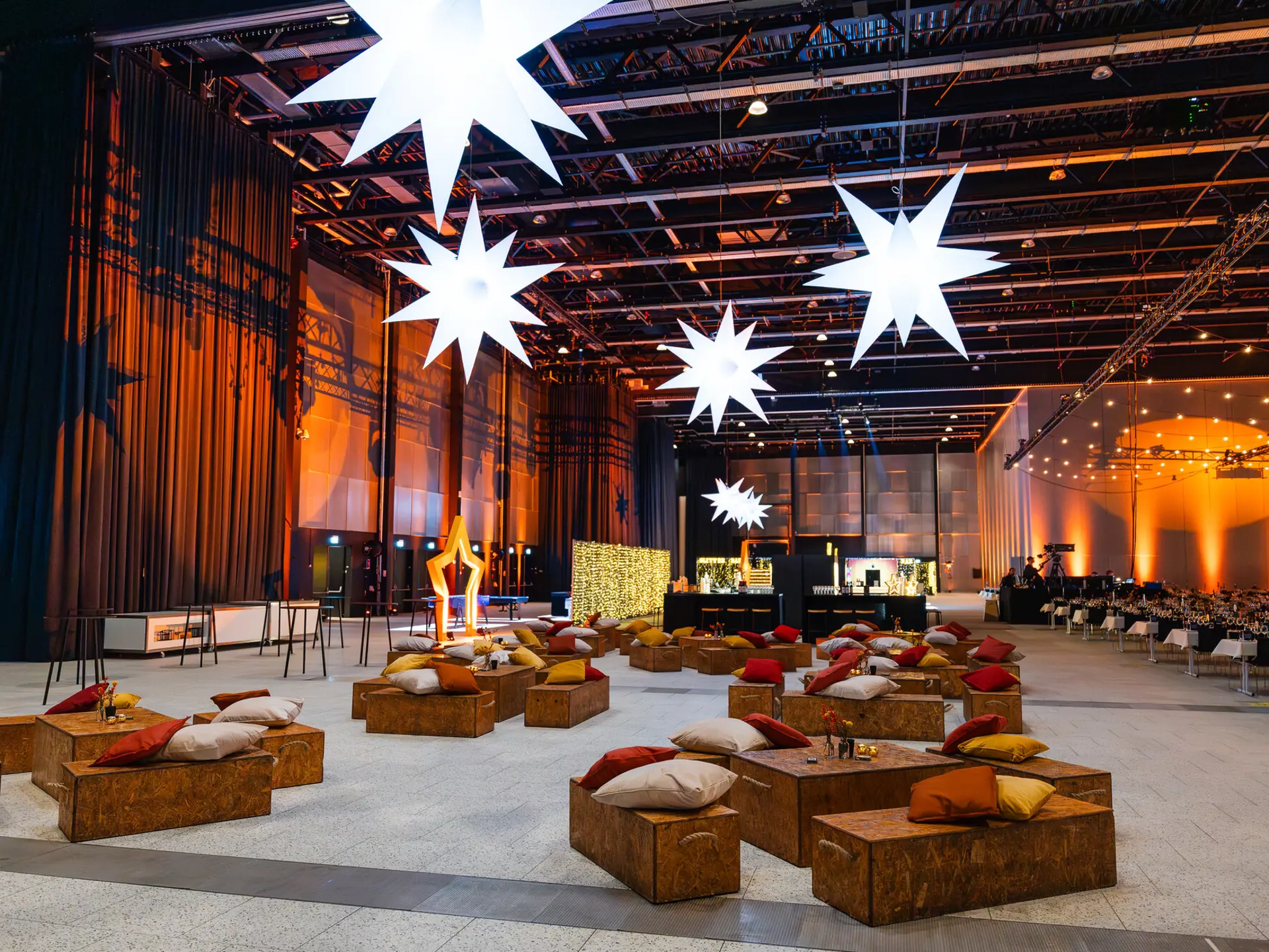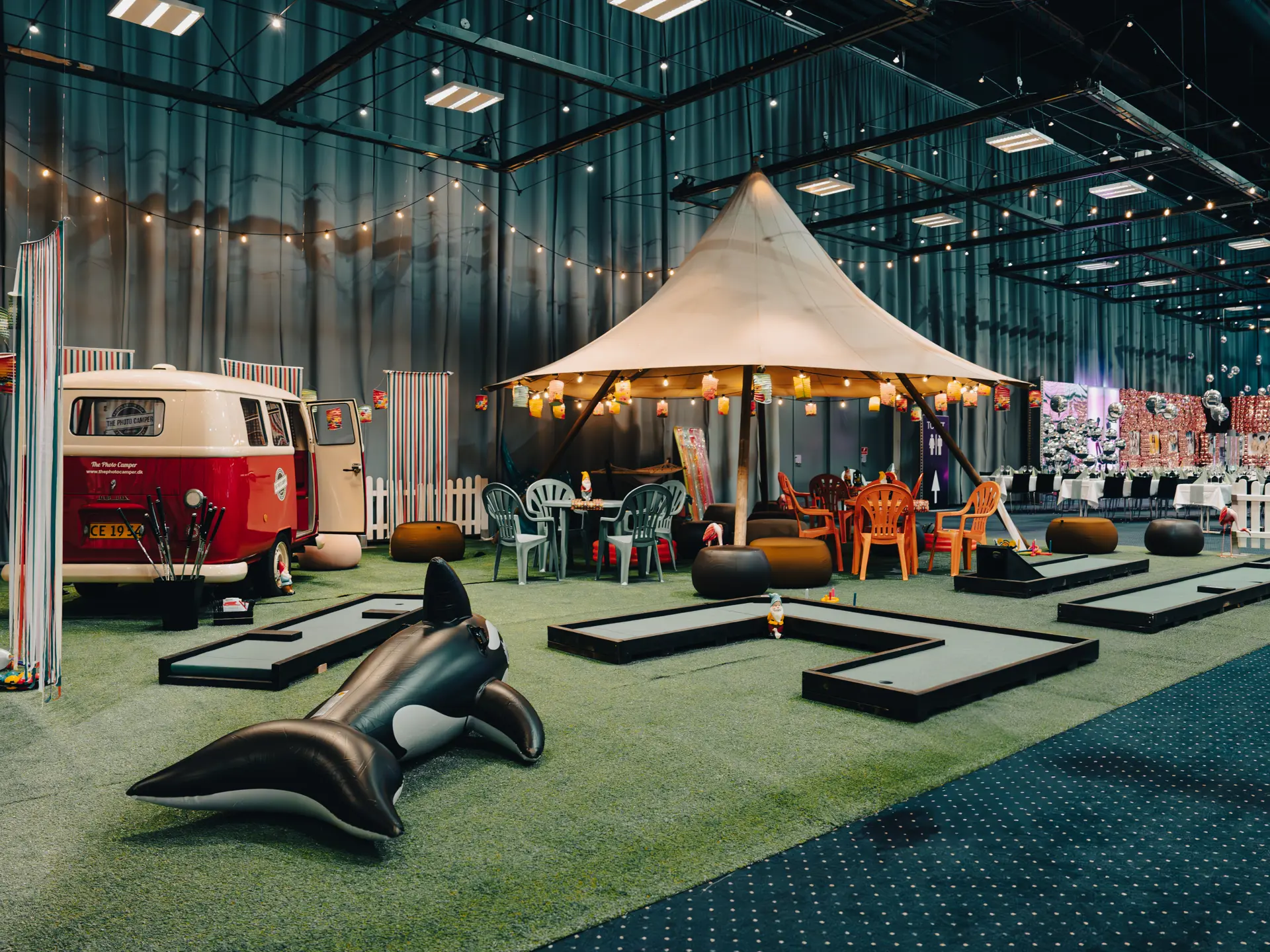 - Fuld fleksibilitet med buffet, bar, musik og dekorationer