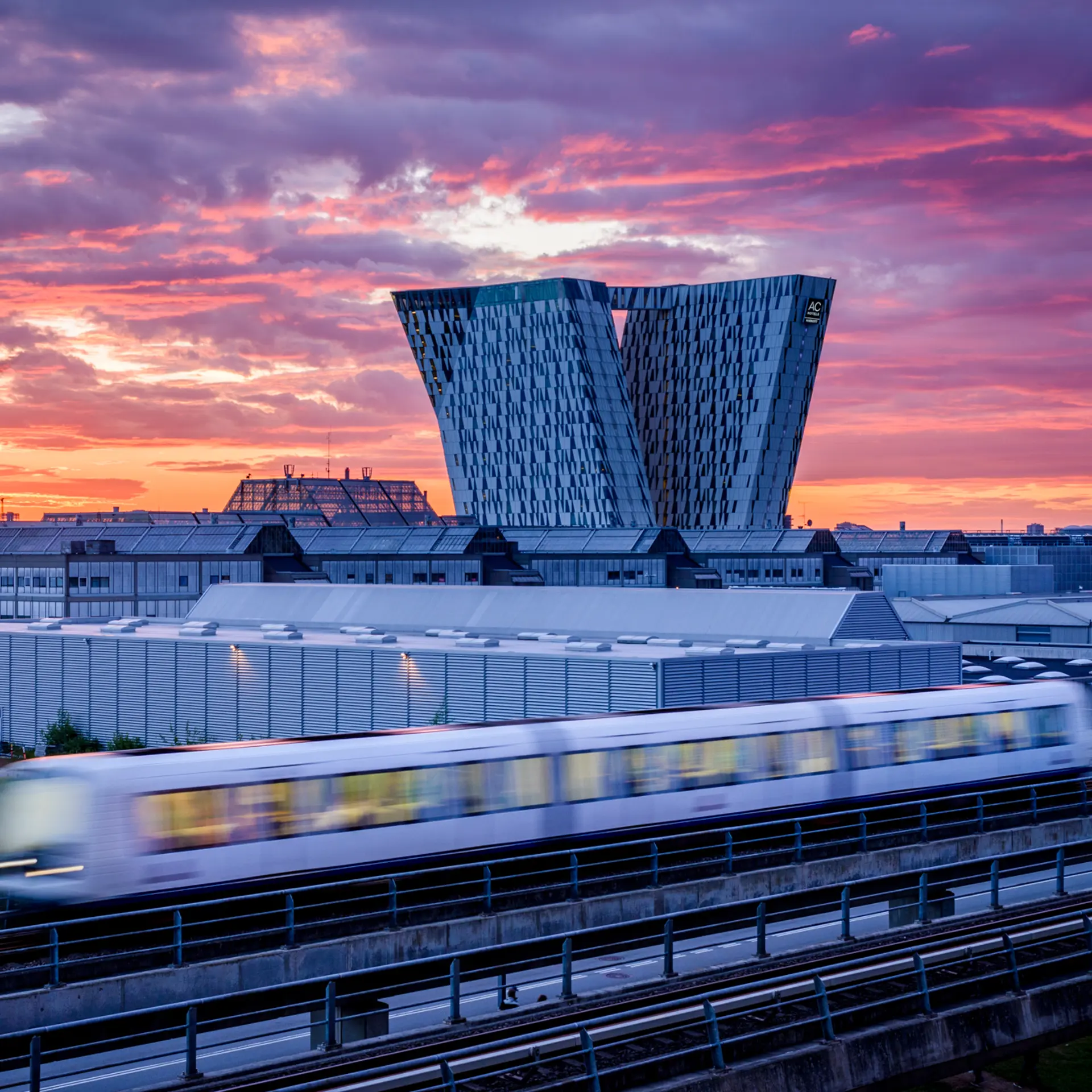 Lufthavnen og motorvejene ligger tæt på, og der er fremragende muligheder for offentlig transport. Og parkeringspladser er intet problem. Velkommen til Bella Center.