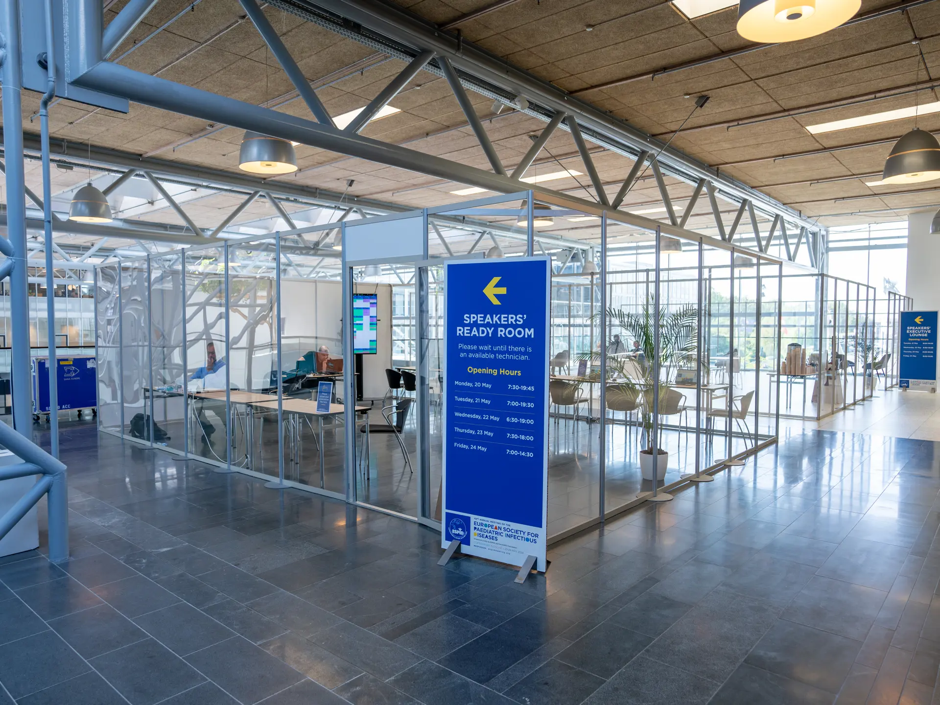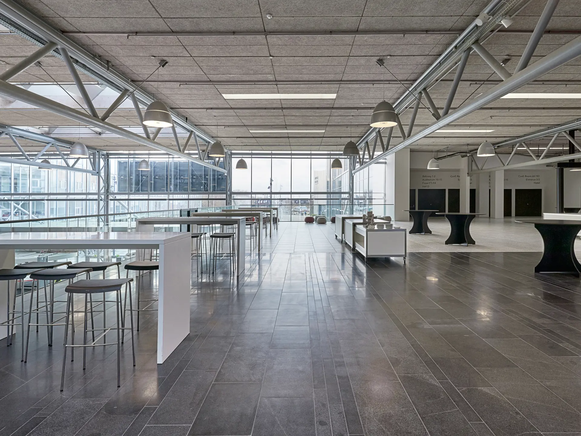 Six ground-floor foyers with access to halls and meeting rooms